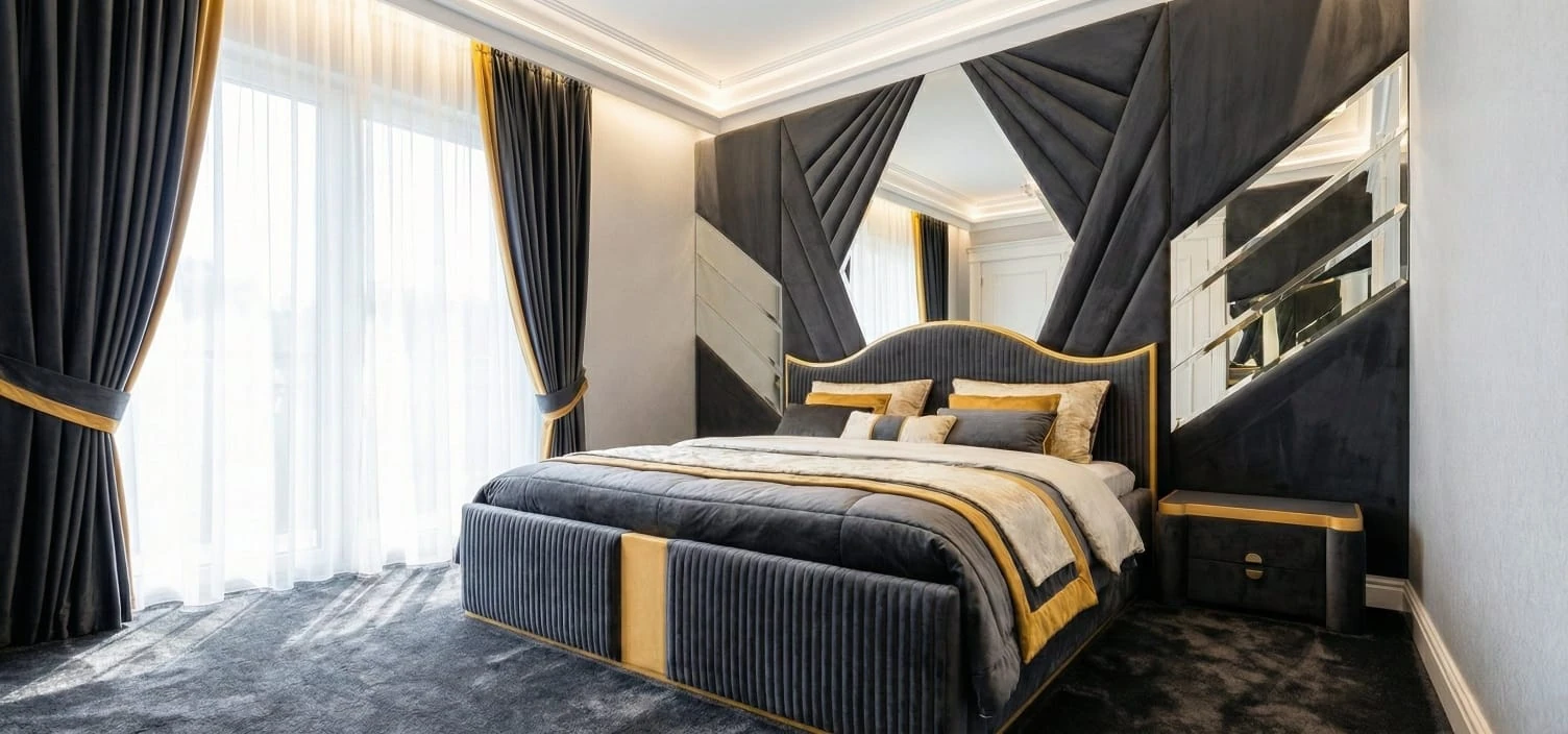 Łóżka tapicerowane z pojemnikami, szafy wnękowe, panele ścienne i nastrojowe oświetlenie LED. Tworzymy intymną przestrzeń, która ułatwia odpoczynek i dodaje elegancji każdemu dniu.